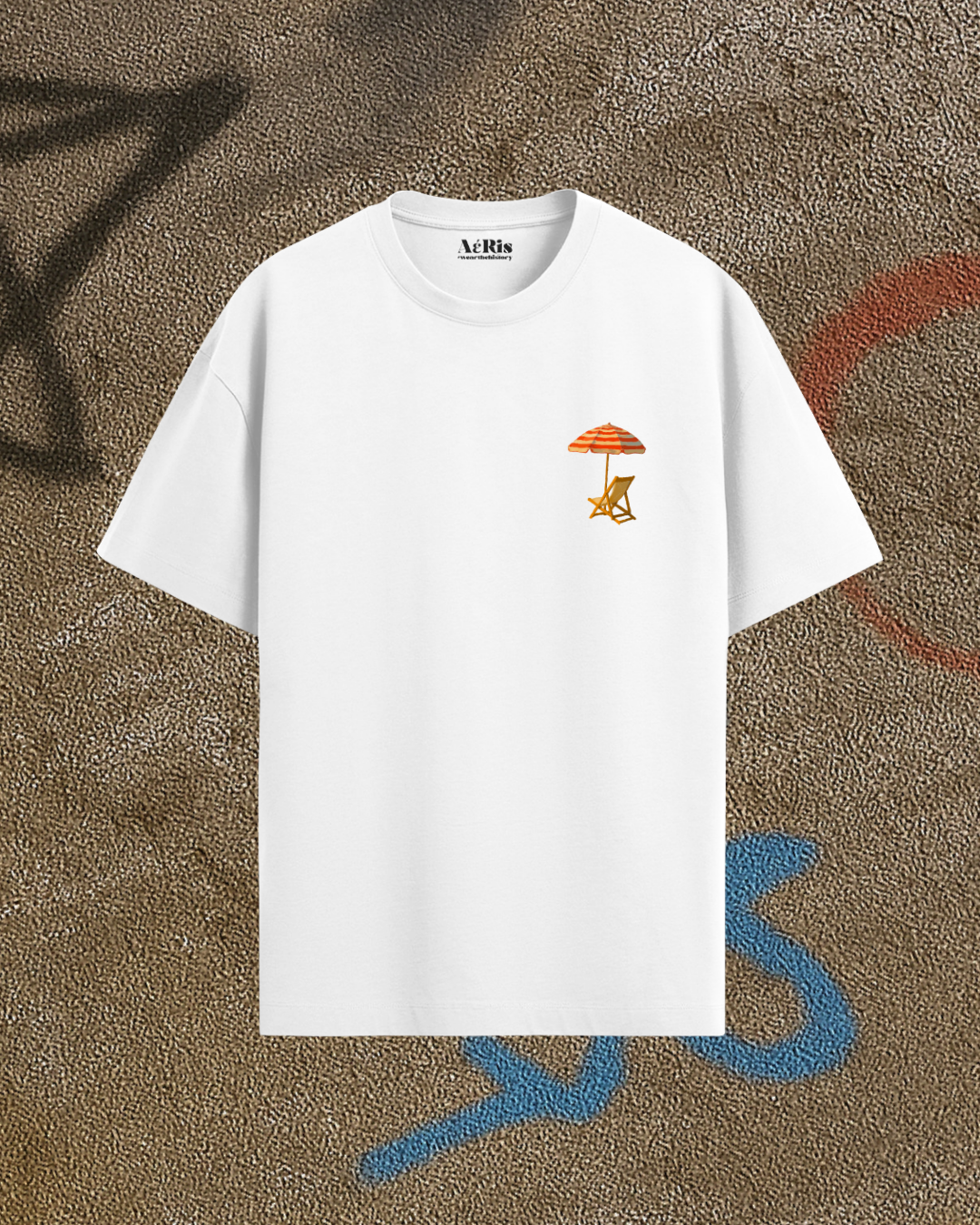 Υπάρχουν εικόνες που δεν χρειάζονται περιγραφή: μια ξαπλώστρα, μια ομπρέλα, μια θάλασσα που κατεβαίνει αργά στο βλέμμα. Είναι η στιγμή πριν τη βουτιά, η παύση που κάνει το καλοκαίρι να μοιάζει με υπόσχεση. Το oversized Aeris T-shirt “OMBRELLA” συλλαμβάνει ακριβώς αυτό το feeling: το “σε λίγο θα μπω” που λέμε κάθε φορά, αλλά μέσα μας ξέρουμε πως ήδη έχουμε χαθεί στο μπλε. Η γραφιστική σύνθεση είναι σαν καρτ-ποστάλ από το καλοκαίρι: μετέωρη ανάμεσα σε ηρεμία και ανυπομονησία. Και η φράση τυλιγμένη γύρω της — “It’s just a matter of time before we fall into the deep blue.” — το κάνει ακόμα πιο δυνατό. Το φοράς και ξαναζείς κάθε πατημασιά στην άμμο, κάθε πρώτη βουτιά, κάθε στιγμή που ένιωσες πως η θάλασσα σε καλεί με το μικρό σου όνομα. Ένα T-shirt για όσους θεωρούν την ομπρέλα… σταθμό πριν την ελευθερία.
